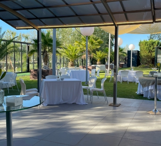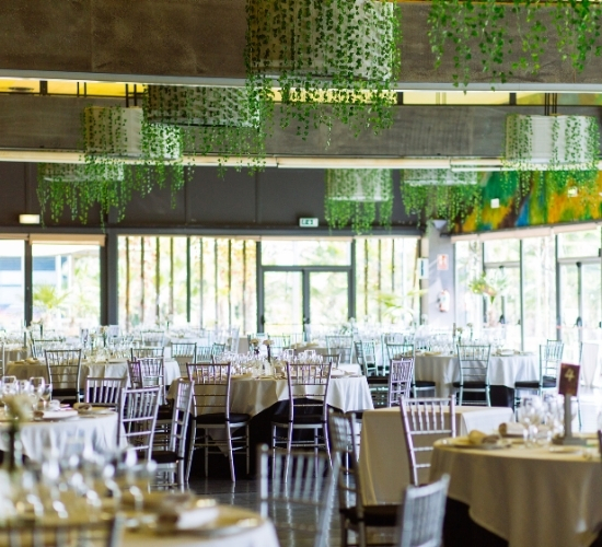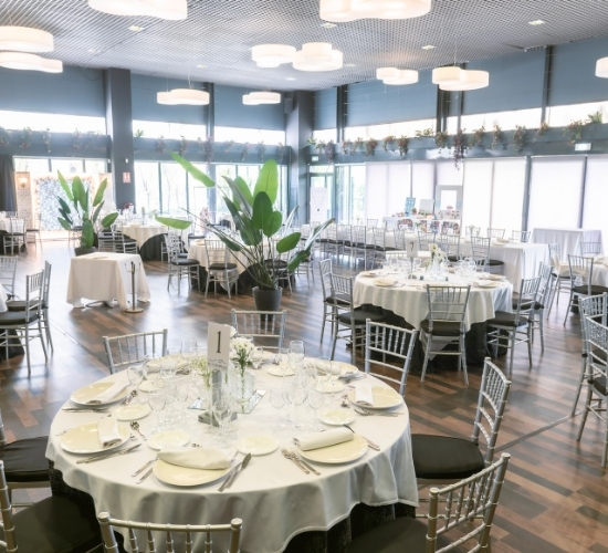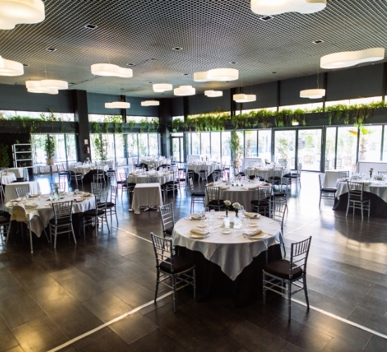Dispone de tres espacios diferenciados donde poder realizar banquetes de más de 850 comensales contado con un sistema de paneles móviles que permiten dividirlo en espacios más pequeños y acogedores.